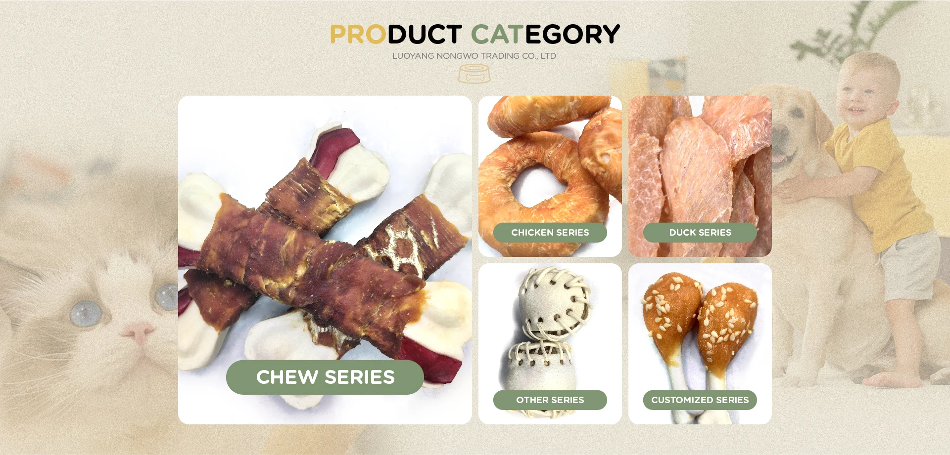 Productos principales:Aperitivos para perros, arena para gatos